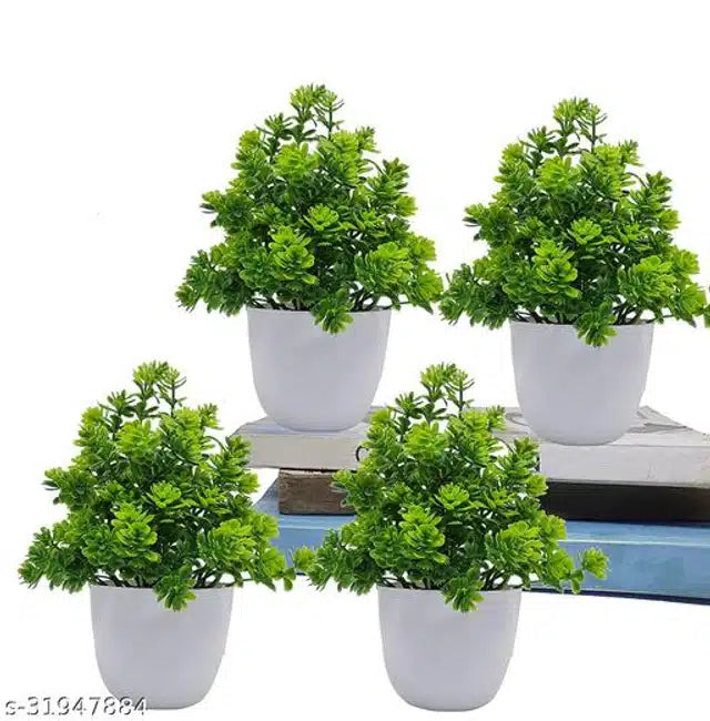 Artificial Plants with Pot (Green & White, Pack of 4)